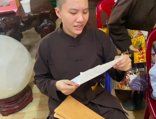 Đáng chú ý, trong clip, khi nghe "chú tiểu" Pháp Tâm gọi mình là mẹ mà không để ý rằng có camera đang quay, "ni cô" này đã vội bịt miệng em. Một khoảnh khắc khác, khi được hỏi con cài bông trắng hay bông hồng, Trí Tâm đã trả lời là bông hồng và cho biết mình vẫn còn mẹ và mẹ em là "ni cô" Huyền Trang.