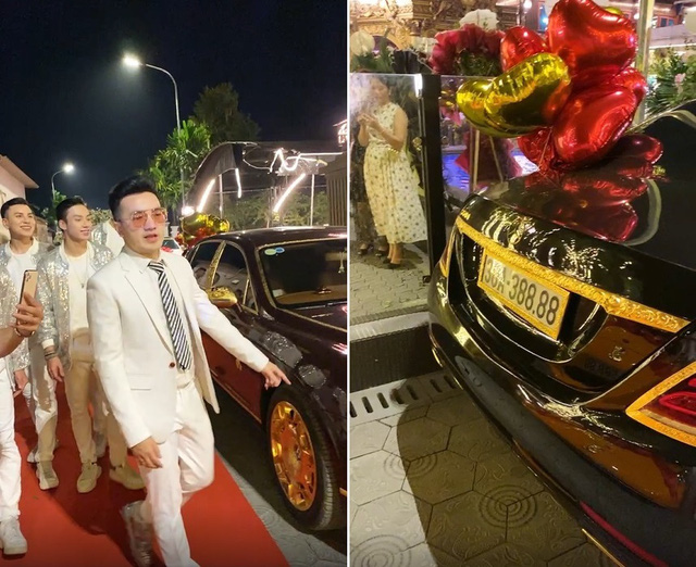 Nối tiếp là chiếc Mercedes-Benz S500 màu đen mang biển kiểm soát 30A-388.88 cũng được dát vàng ở các bộ phận có thể.