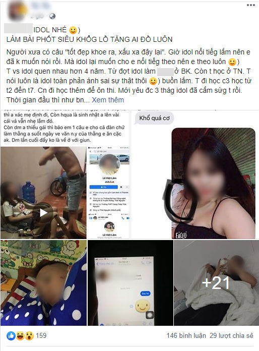 + Hôm qua là lần thứ 3 anh lại tiếp tục rủ nó đi sinh nhật xong đưa nó lên L.V. May cho anh là hôm qua lúc em lên không gặp nó ở đấy không thì anh xác định. Còn hôm qua là sinh nhật anh lên vài cái vả vẫn nhẹ lắm đó", thanh niên này bức xúc chia sẻ trên trang cá nhân tố người anh em xã hội đong đưa, tán tỉnh bạn gái của mình.