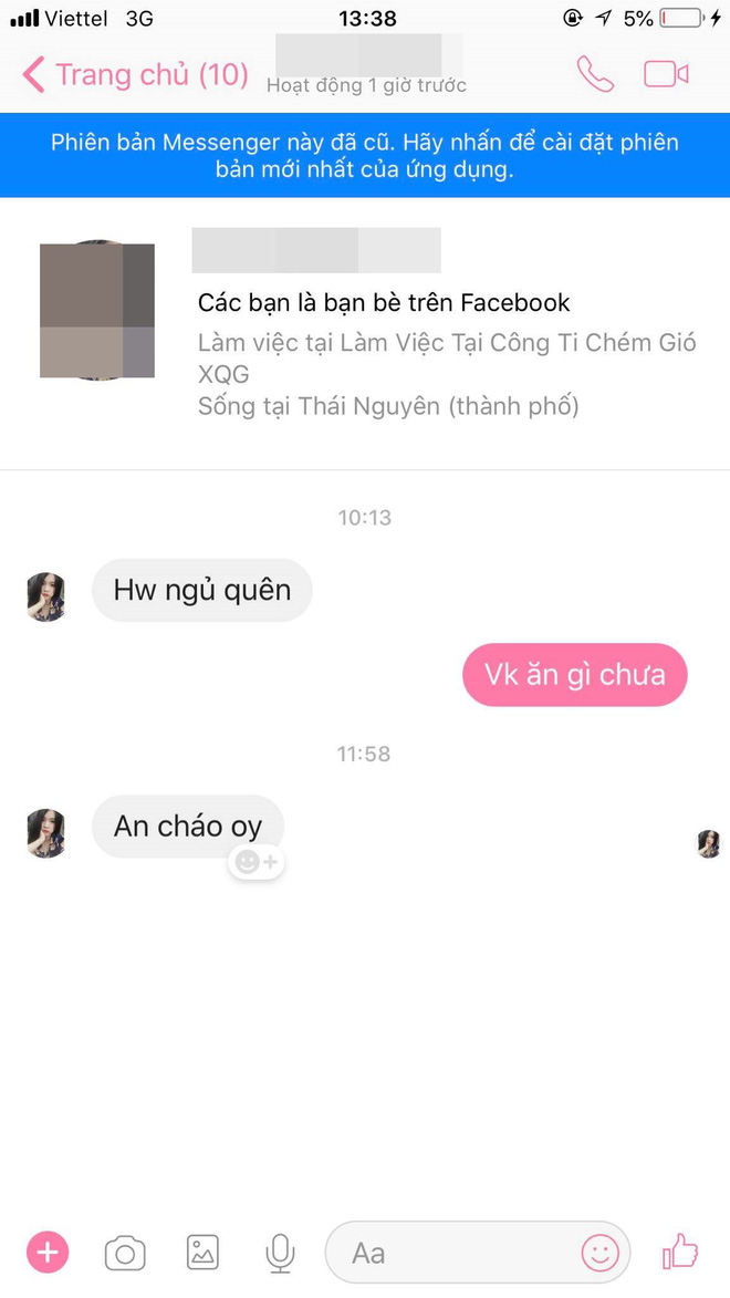+ Lần 2 sau khoảng 10 ngày, anh vẫn ve vãn nhắn tin đò đưa nó rồi rủ đi chơi các kiểu trong khi anh biết nó là người yêu rồi. Em gọi điện hẹn gặp anh thì anh vòng vo không dám gặp. Mãi sau mới gặp được anh ở 1983 thì anh lại xin lỗi rồi bảo chỗ anh em này nọ xong hứa lên hứa xuống. Anh thề, anh không bao giờ gọi và nhắn tin cho nó nữa...