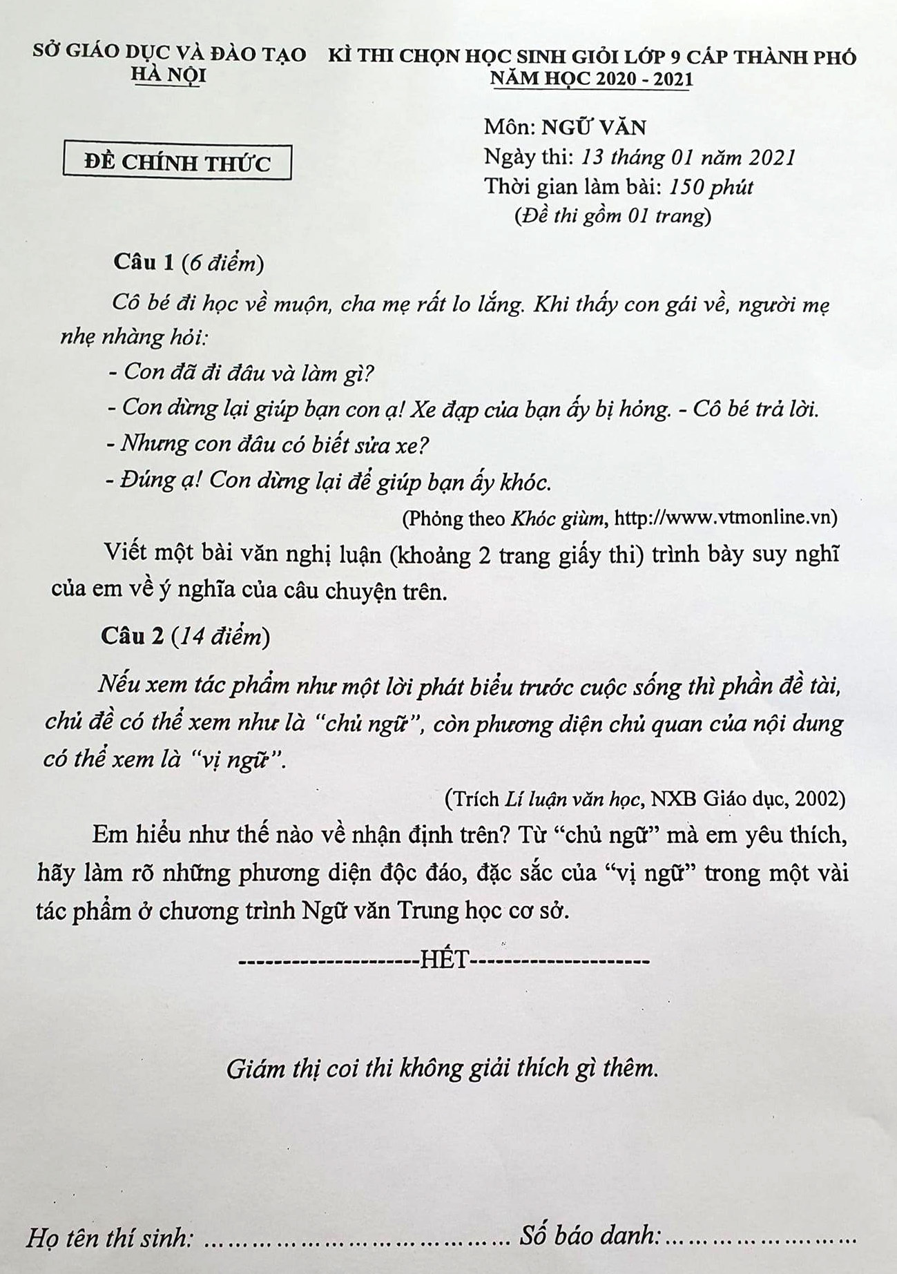 Trong khi đó, đề thi học sinh giỏi Ngữ văn lớp 9 cấp thành phố Hà Nội có ý kiến trái chiều với chi tiết "Khóc giùm".