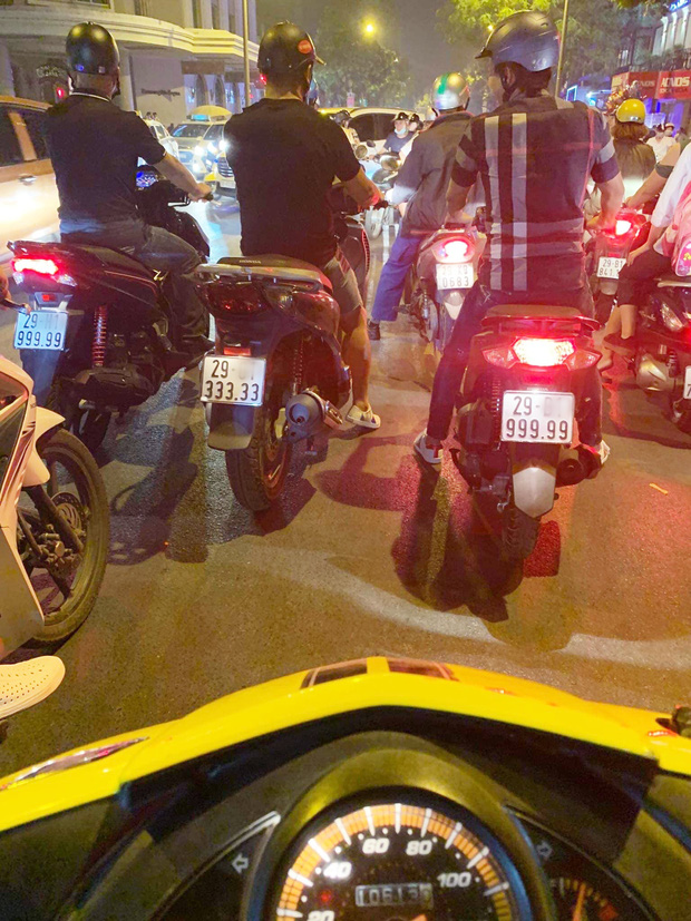 Như tối 3/7, trên mạng xã hội đã chia sẻ hình ảnh ghi lại khoảnh khắc 3 chiếc xe máy biển ngũ quý đậu song song với nhau khi đang di chuyển trên bờ hồ phố đi bộ Hoàn Kiếm khiến nhiều người xôn xao. Theo đó, 3 chiếc xe tay ga "biển khủng" bao gồm chiếc Honda AirBlade và Honda Vision cùng mang biển ngũ quý 9 và một chiếc Honda Sh "đeo" biển ngũ quý 3.