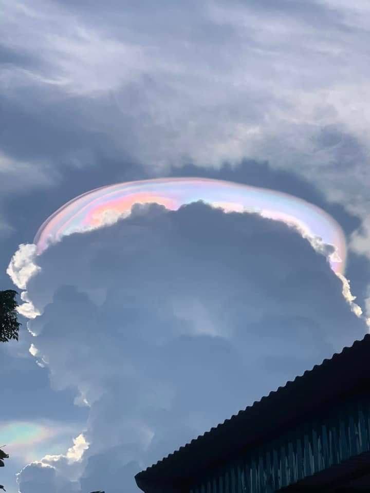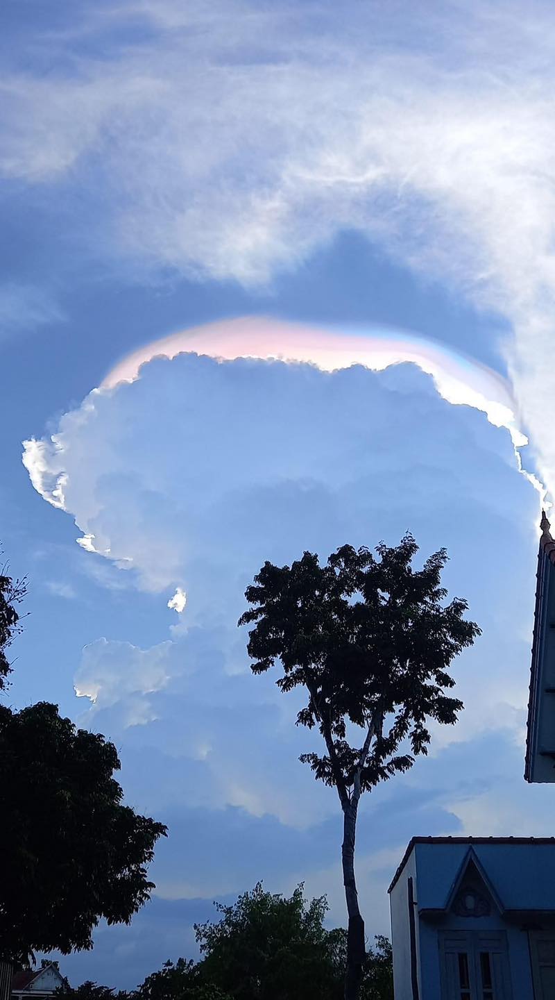 “Bản chất của nó là bên trên của các đám mây đối lưu mạnh có các hạt nước nhỏ và rất nhỏ đóng băng thành các tinh thể nước. Khi ánh nắng chiếu vào các hạt băng này bị khúc xạ thành lưỡi trai nhiều màu sắc, hay còn gọi là lưỡi trai bảy sắc. Loại này hiếm gặp hơn vì mây dạng hình cái mũ”, ông Minh cho hay.