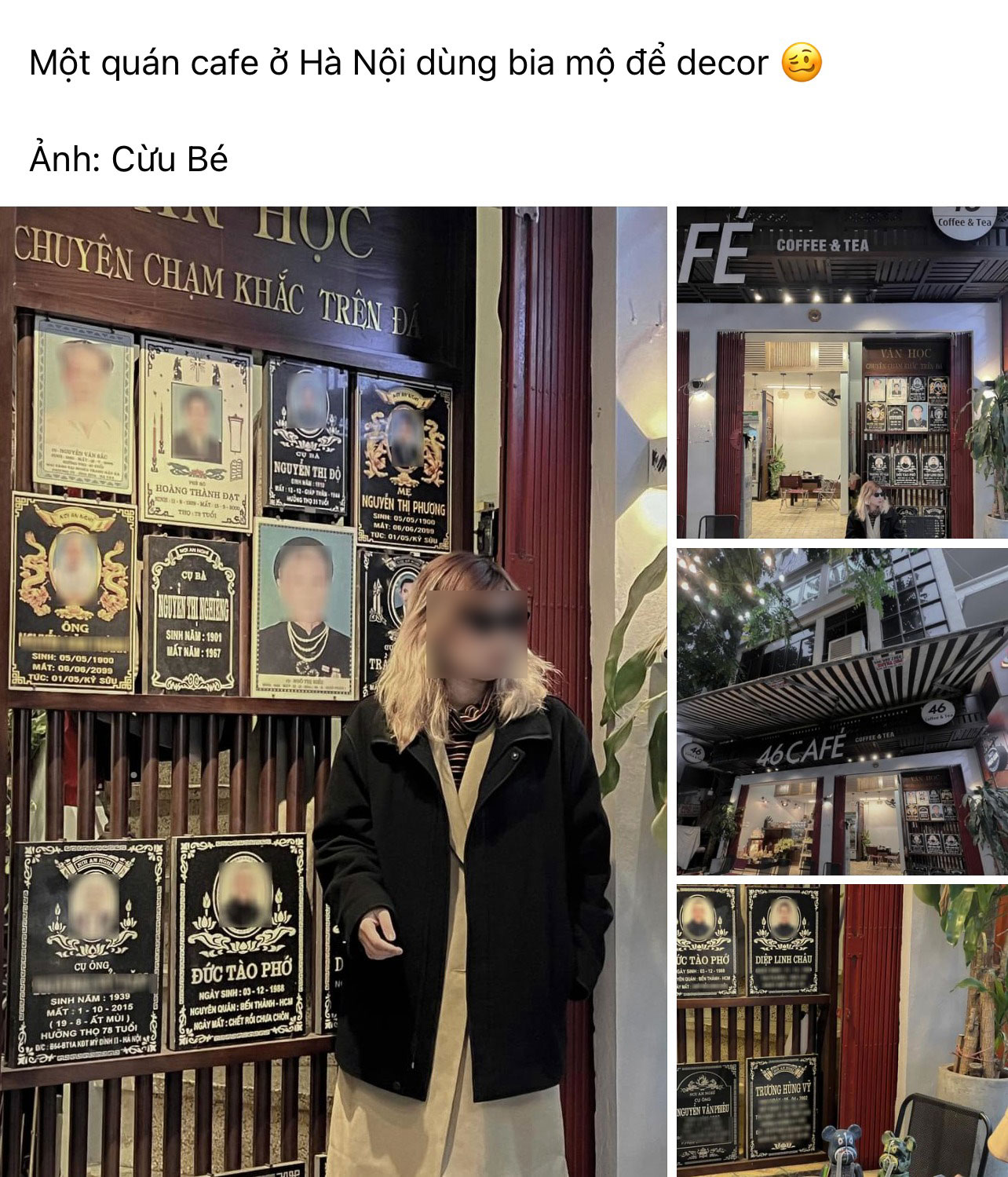 27/12/2022 16:39Xôn xao hình ảnh một quán cà phê ở Hà Nội dùng bia mộ để làm decor