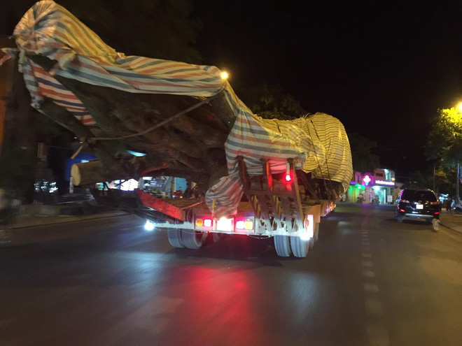 Đến tối 9/7, chiếc xe này bất ngờ xuất hiện và di chuyển theo Quốc lộ 48, đi qua nhiều huyện để ra khỏi địa bàn tỉnh Nghệ An. Tuy nhiên thời điểm này cây "quái thú cổ thụ" này đã được chuyển sang một chiếc xe ô tô khác mang biển số Nghệ An để di chuyển.
