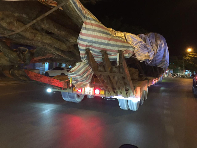 Theo hình ảnh ghi lại cho thấy, chiếc xe đầu kéo này mang BKS 29C. Qua quan sát cho thấy, cây cổ thụ này dài khoảng 20m đã được chắn gốc, cắt cành lá và được che đậy. Tuy nhiên, do cây quá lớn và dài nên không vừa với kích thước ro-mooc xe.