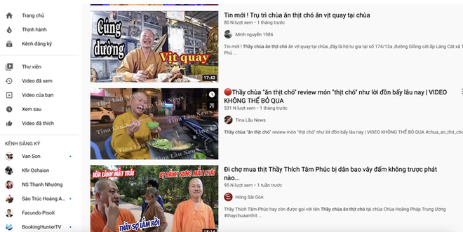 Hôm nay, theo Tiền phong, Công an huyện Củ Chi (TP.HCM) đã lập danh sách và mời 5 Youtuber lên làm việc. Những người này đã quay phim, livestream đăng trên youtube những phát ngôn của ông Nguyễn Minh Phúc (tự xưng Tâm Phúc), trong đó có một số người quay nội dung "thầy chùa ăn thịt chó".