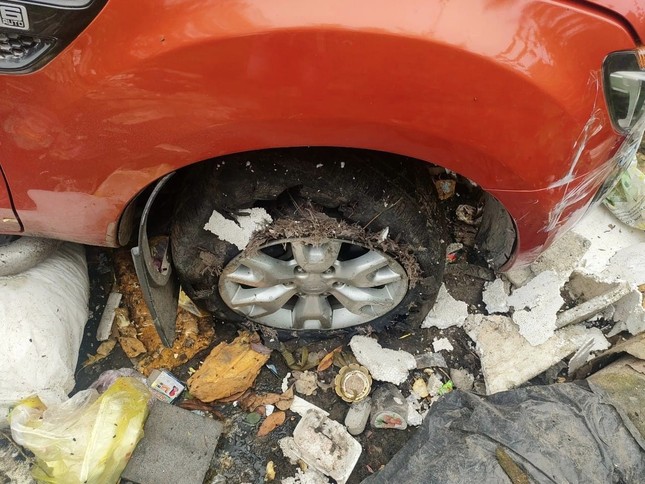 "Sáng nay chúng tôi tới lấy thì gara bảo là mất xe. Khi check camera thì phát hiện nhân viên lấy xe đi. Sau thời gian tìm kiếm thì thấy xe của nhà tôi nằm ở một bãi rác với tình trạng nổ lốp, móp quanh xe”, chị Ph. cho biết.
