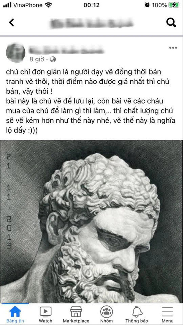 Trong số các trạng thái đăng tải, vị Kiến trúc sư này nói: "Chú chỉ đơn giản là người dạy vẽ đồng thời bán tranh vẽ thôi, thời điểm nào được giá nhất thì chú bán, vậy thôi!