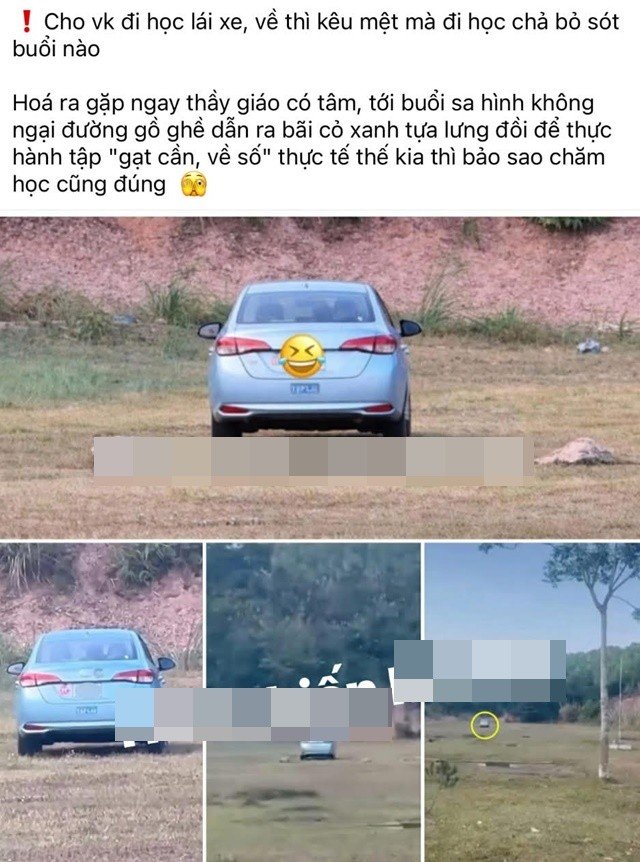 Những ngày qua, mạng xã hội xôn xao bàn tán trước hình ảnh 1 chiếc xe tập lái đỗ ở bãi đất trống ven đồi, kèm theo đó là những tiêu đề như: “Xe tập lái đậu ở bãi đất trống có biểu hiện lạ”, “Cho vợ đi học lái xe, về thì kêu mệt mà đi học chả sót buổi nào. Hóa ra gặp thầy giáo có tâm không ngại đường gồ ghề dẫn ra bãi cỏ xanh tựa lưng đồi để thực hành tập gạt cần về số thực tế thế kia bảo sao chăm học cũng đúng”…
