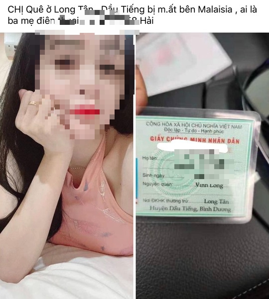 Ngày 31-5, nhiều trang mạng xã hội có lượt theo dõi lớn ở Bình Dương xôn hình ảnh của một nữ lao động Việt Nam tử vong tại Malaysia, nhưng không biết tung tích thân nhân ở đâu để đưa về an táng. Vụ việc thu hút sự quan tâm và chia sẻ từ cộng đồng mạng.