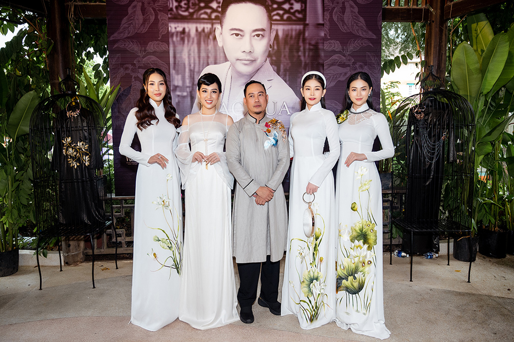 Cụ thể, NTK Võ Việt Chung cho biết các mẫu áo dài lên sóng thời gian qua là những tác phẩm nằm trong BST "Sen Trong Giếng Ngọc", được anh ra mắt tại Hội nghị Dịch vụ 2024 của Vietnam Airlines ngày 23/8/2024.