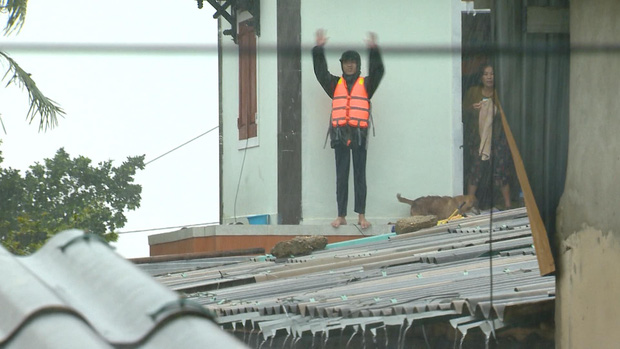 Cũng trong lần tác nghiệp này, phóng viên VTV đã ghi lại được thêm nhiều hình ảnh đầy xót xa khác. Đó là 1 người đàn ông đứng trên mái nhà, vẫy tay gọi thuyền cứu hộ. Ngôi nhà nơi người đàn ông này cùng gia đình đang trú ẩn trông khá cao và kiên cố, nhưng trong tình cảnh nước lũ vây quanh, mưa to kèm mất điện, thứ họ cần hơn cả chính là được giải cứu đến nơi thật sự an toàn, có đồ ăn và được sưởi ấm.