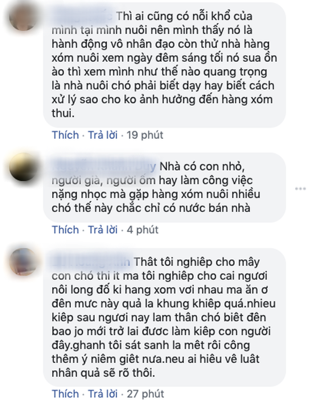 Số khác thì cho rằng, dù nuôi chó gây ầm ĩ nhưng sẽ có nhiều hướng giải quyết khi ngồi với nhau cùng nói chuyện, bàn bạc hơn là ra tay hành xử có phần tàn nhẫn như vậy.