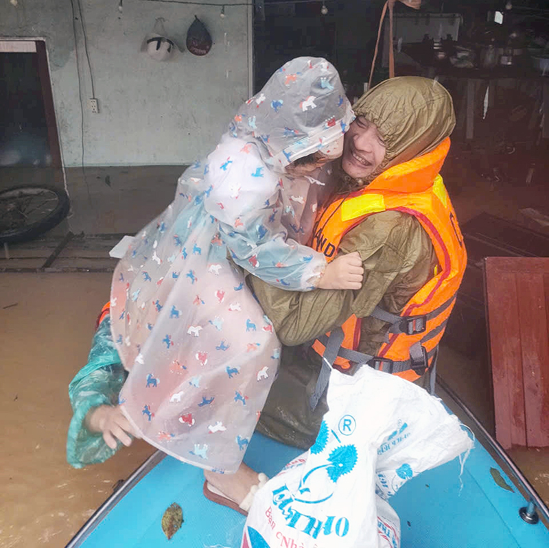 "Tháng 9 Yagi miền Bắc, tháng 10 Trà Mi miền Trung. Lực lượng chức năng vẫn đang gồng mình để giải cứu bà con trong biển nước. Đồng bào mình ơi cố lên!"