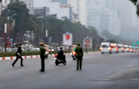 Trước đó, khoảng 7h sáng ngày 25/1, khi đoàn xe ưu tiên do cảnh sát giao thông đang dẫn đoàn đại biểu tham dự Đại hội Đảng toàn quốc lần thứ XIII trên đoạn đường Trần Duy Hưng hướng Đại lộ Thăng Long, anh T.V.Đ bất ngờ điều khiển xe máy Honda Ablade biển kiểm soát 89B1-98xxx lao theo đoàn xe.
