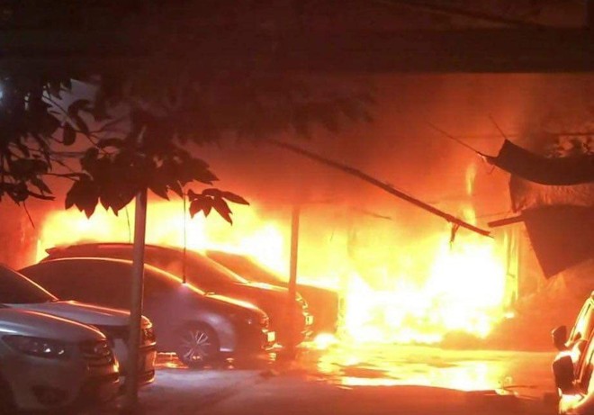 Lực lượng chữa cháy chuyên nghiệp khẩn trương đến hiện trường, ghi nhận điểm cháy nằm trong con ngõ khá rộng. Tại đây, một số hộ dân đã dựng mái để đỗ ô tô qua đêm. Vị trí phát lửa là 1 trong số các xe ô tô này!