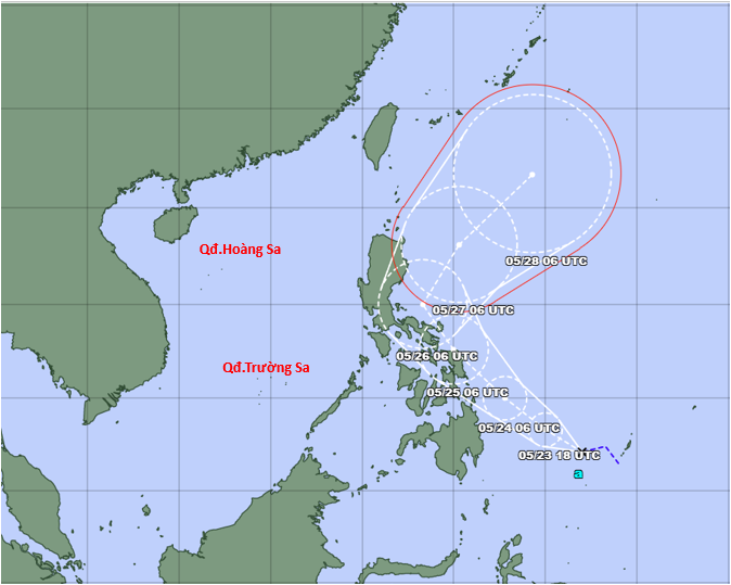 Theo Trung tâm dự báo khí tượng thủy văn quốc gia, hiện nay (23/5), ở khu vực Tây Bắc Thái Bình Dương (phía Đông của khu vực miền Nam Philippines) đang tồn tại một áp thấp nhiệt đới.