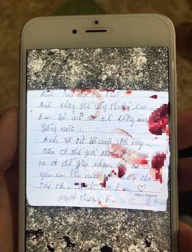 31/01/2021 15:00Xuất hiện tâm thư vấy máu được cho là của nam sinh lớp 12 cắt cổ tự tử tại nhà bạn gái: 'Em bỏ anh rồi, anh không muốn sống nữa'