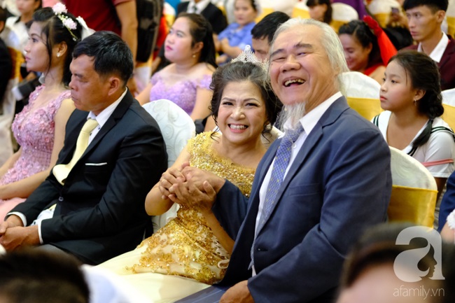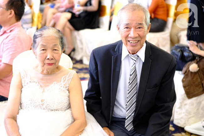 "Chúng tôi vui lắm khi được chấp nhận đơn đăng ký từ ban tổ chức. Bà ấy cứ trông đợi, nhắc hoài đến ngày tổ chức đám cưới. Hôm nay đến nhà hàng vợ tôi vui lắm, cười muốn rụng hết răng luôn" - cụ ông 77 tuổi nói rồi nhìn vợ âu yếm tại nơi diễn ra lễ cưới "nửa thế kỷ" của hai người.