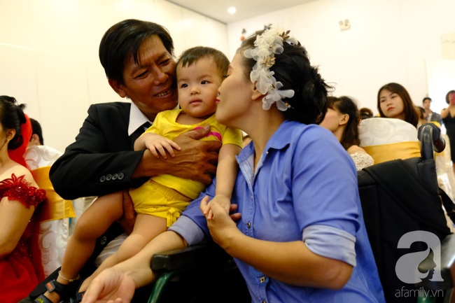 Hai vợ chồng rất hốt hoảng vì em đang mang thai 3 tháng. May mà đứa nhỏ trong bụng không sao. Nếu mà bị gì thì hôm nay nó đâu chứng kiến được ba mẹ làm đám cưới" - chị Hiền nói rồi ôm chặt đứa trẻ dễ thương trong tay.