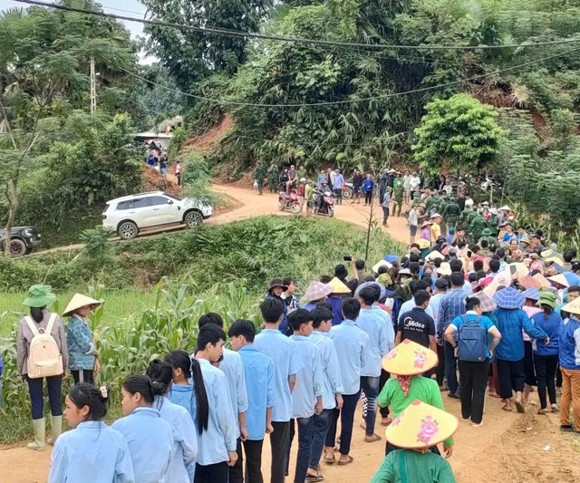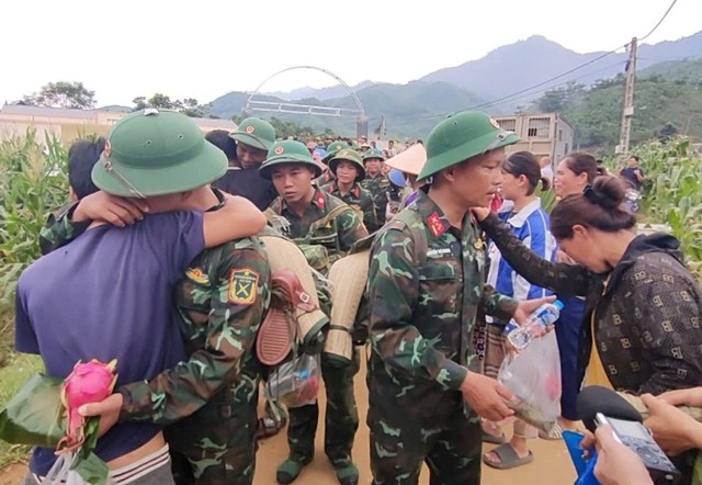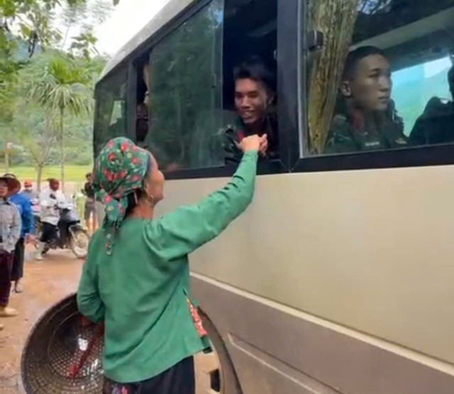 Nghe tin các chiến sĩ bộ đội rời làng, người dân xếp hàng dài hai bên đường để giơ tay chào. Nhiều người dân đã không cầm được nước mắt khi chứng kiến cảnh những anh bộ đội rời thôn Làng Nủ sau 14 ngày tìm kiếm những nạn nhân mất tích do lũ quét, sạt lở đất và giúp người dân khắc phục hậu quả do bão số 3, ổn định cuộc sống.