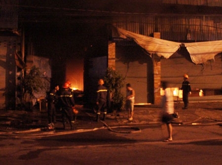 Ngọn lửa bùng phát và nhanh chóng bao trùm khu xưởng trong đêm khiến toàn bộ tài sản bị thiêu rụi. Trong đám cháy phát ra nhiều tiếng nổ lớn.