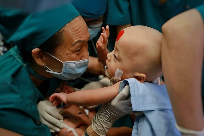 16/07/2020 05:00Ý nghĩa đặc biệt của hai dấu chấm màu xanh, đỏ trên trán hai bé song sinh dính liền trong ca đại phẫu thuật