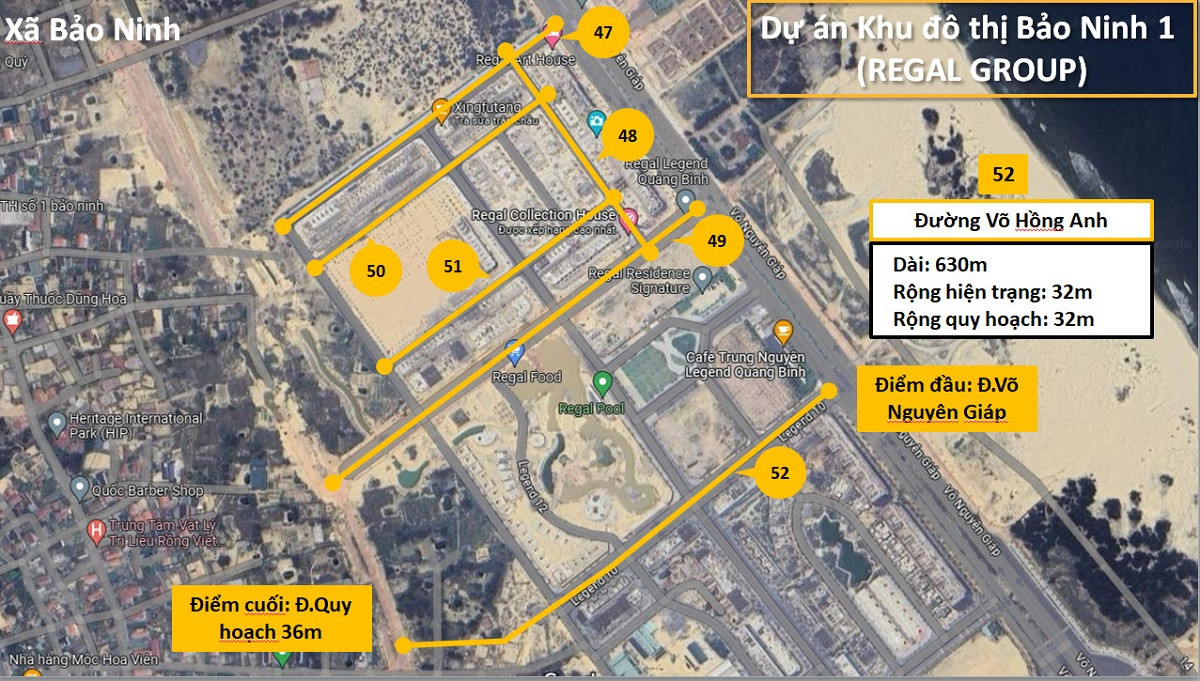Được biết, tuyến đường được chọn lấy tên Võ Hồng Anh có chiều dài 630m, rộng 32m, điểm đầu giáp đường Võ Nguyên Giáp, điểm cuối giáp đường quy hoạch 36m.
